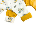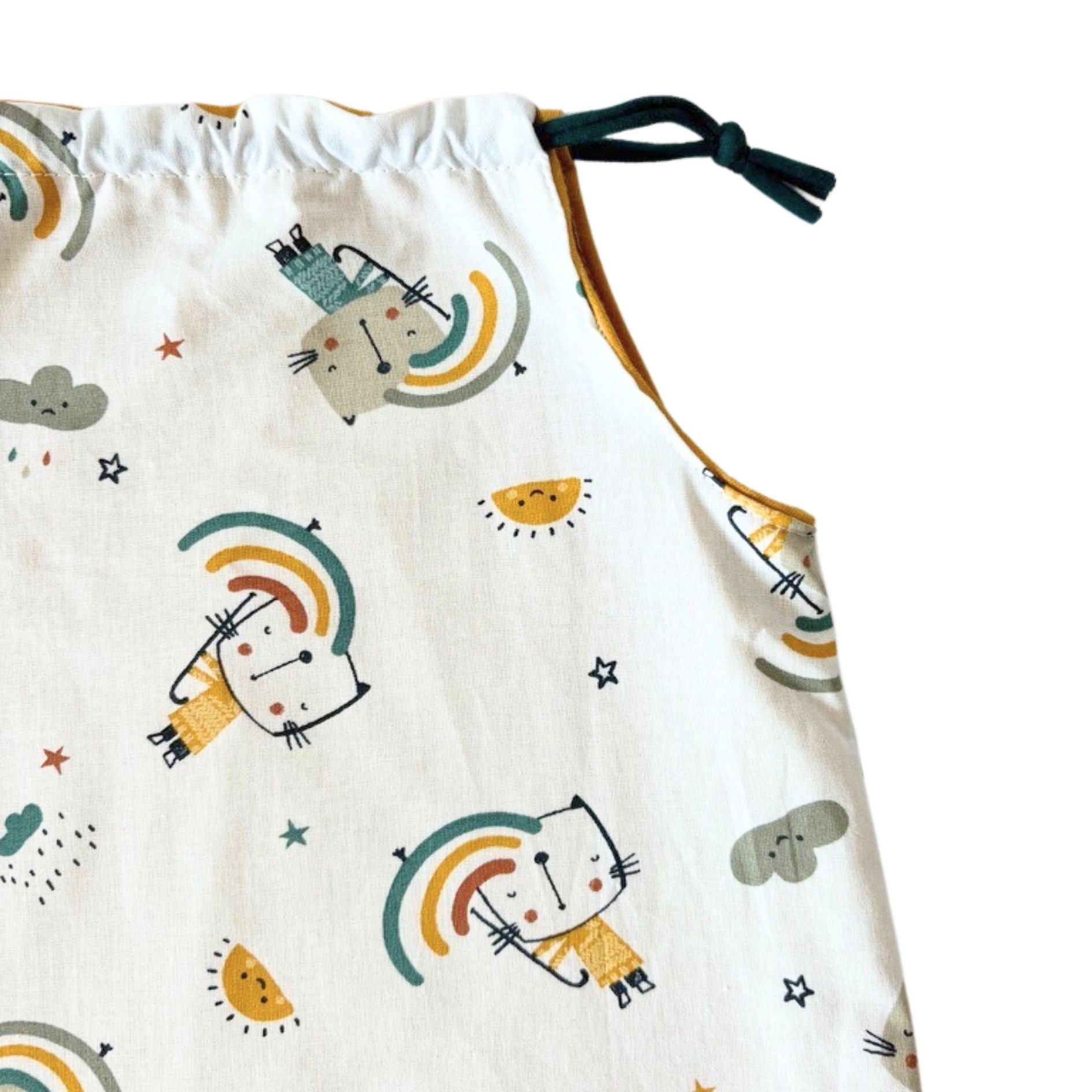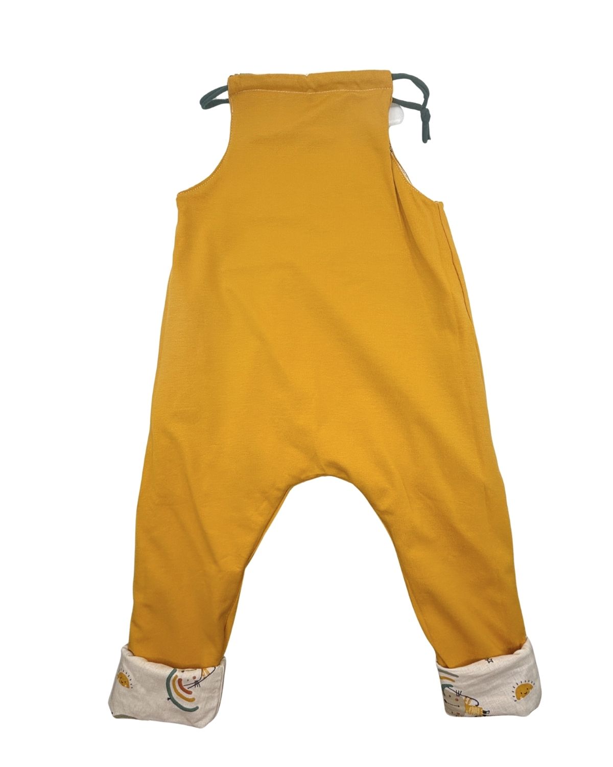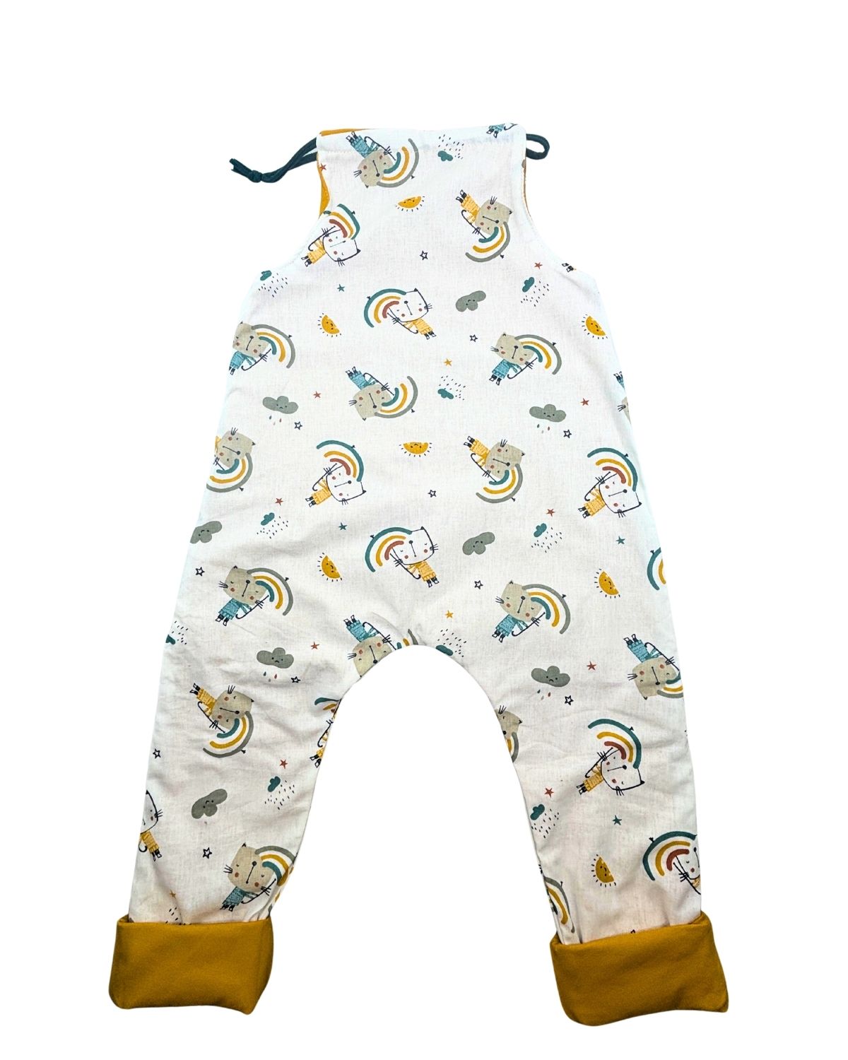 La salopette réversible vous permet de varier les styles en un clin d'œil. Un côté en coton imprimé Chats et un coté jersey de coton jaune moutarde. Un véritable must-have dans la garde-robe de bébé !