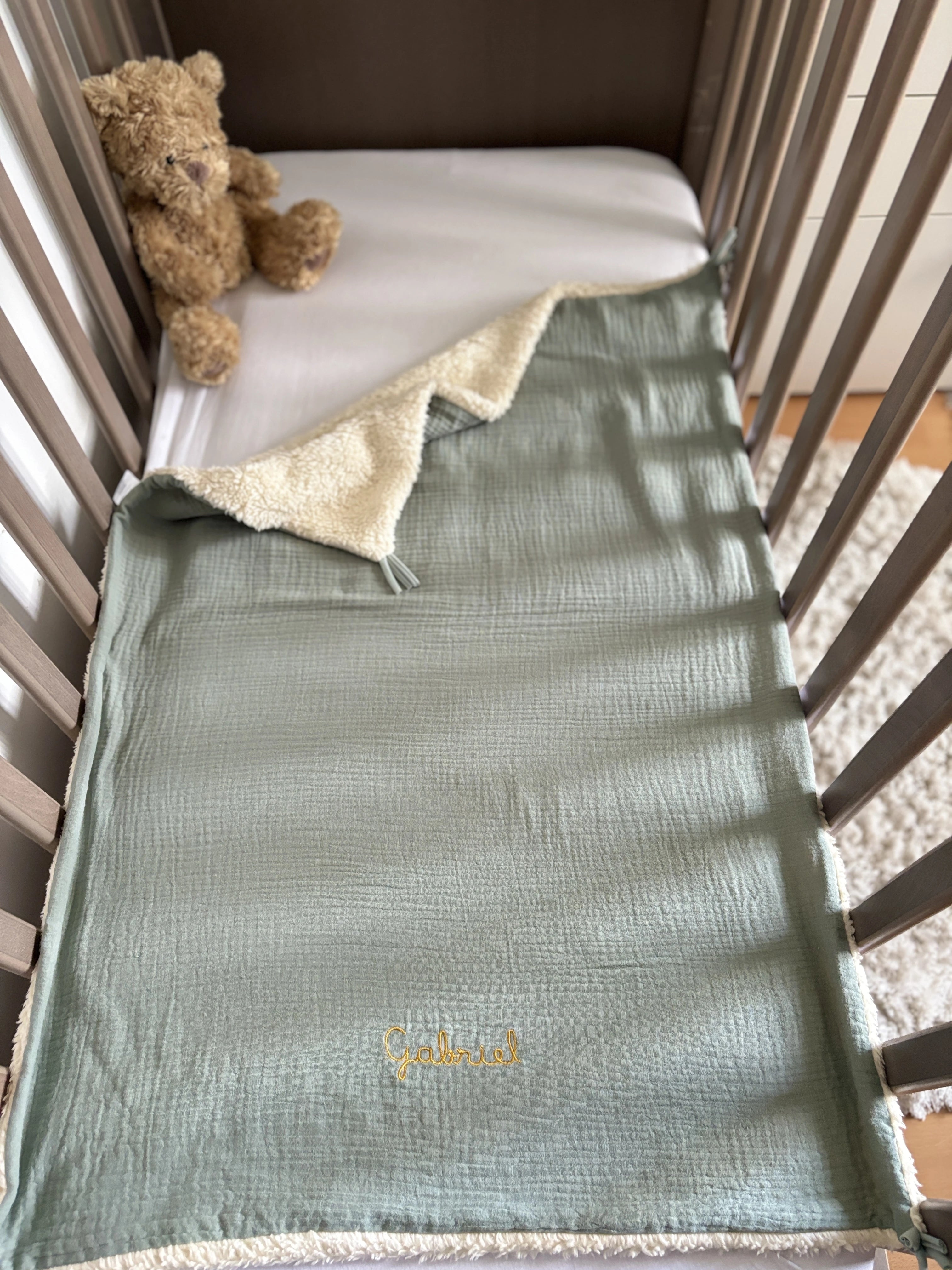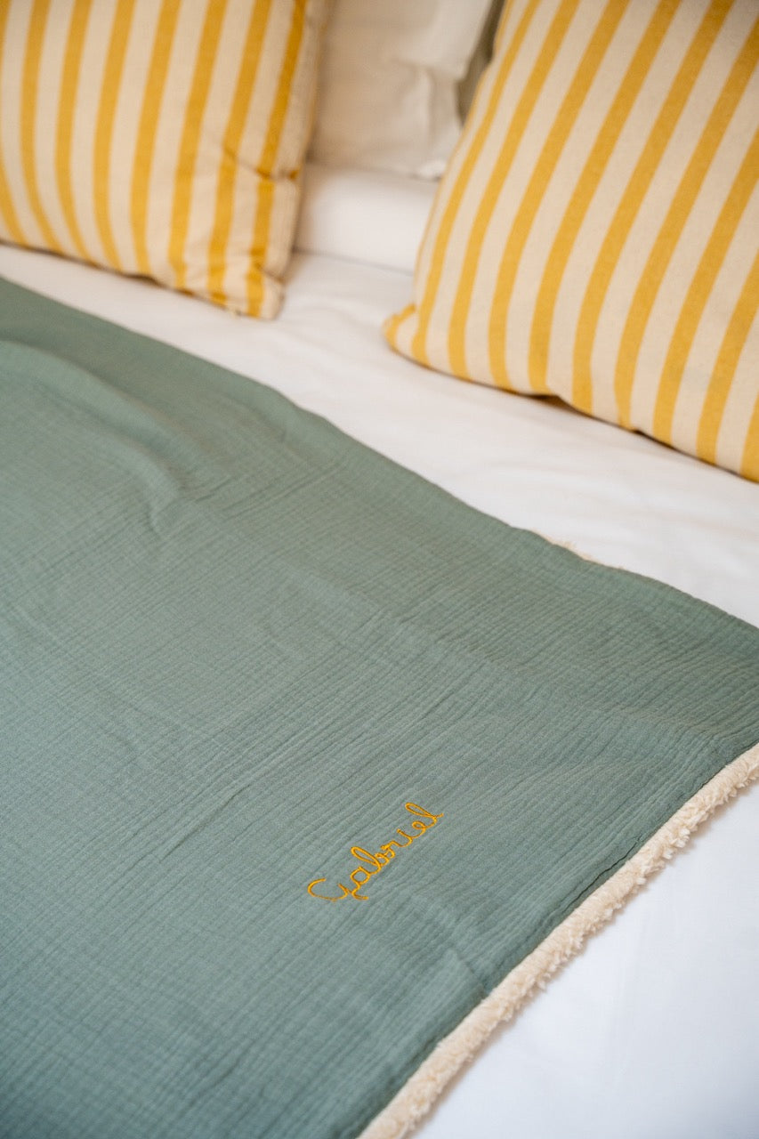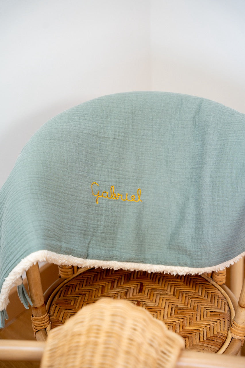 Couverture chaude brodée "Gabriel" / Coton bio
